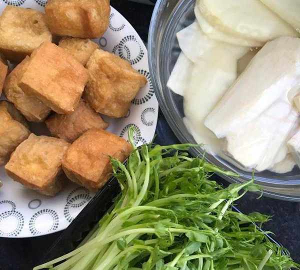 第6步、油豆泡,豌豆苗準備就緒。