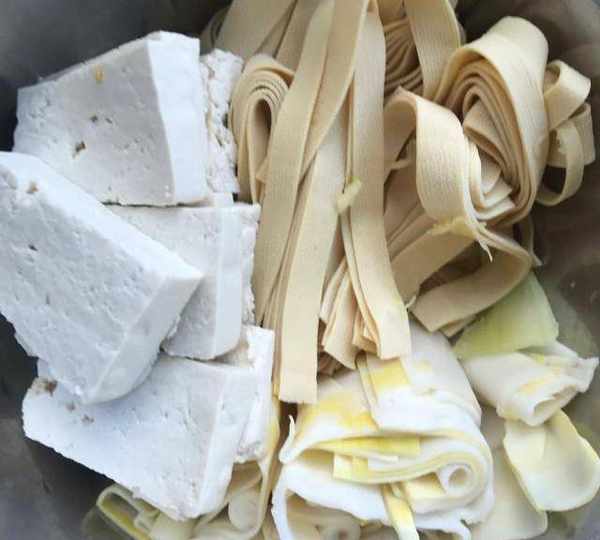 第3步、豆腐,豆皮,竹筍洗凈改刀。