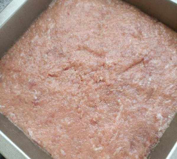 我喜歡有顆粒感的,所以肉餡打的不夠細膩,肉餡不細膩,放的淀粉又少,做出來的午餐肉有蜂窩,看起來不美,味道真心不差的。