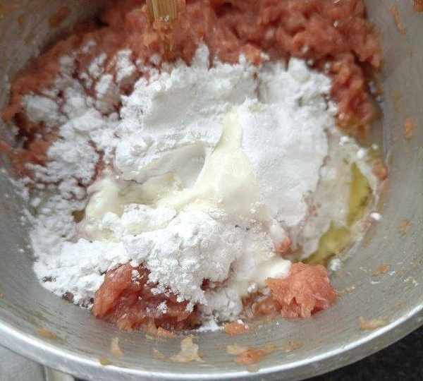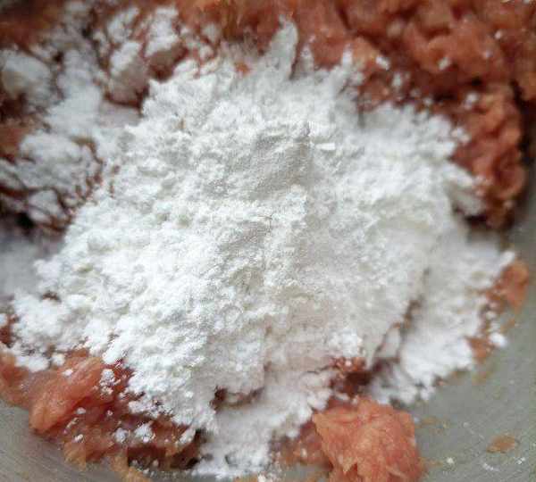 原料:豬精肉、蔥薑水、淀粉、蛋清、食鹽、黑胡椒粉、雞精、生抽。