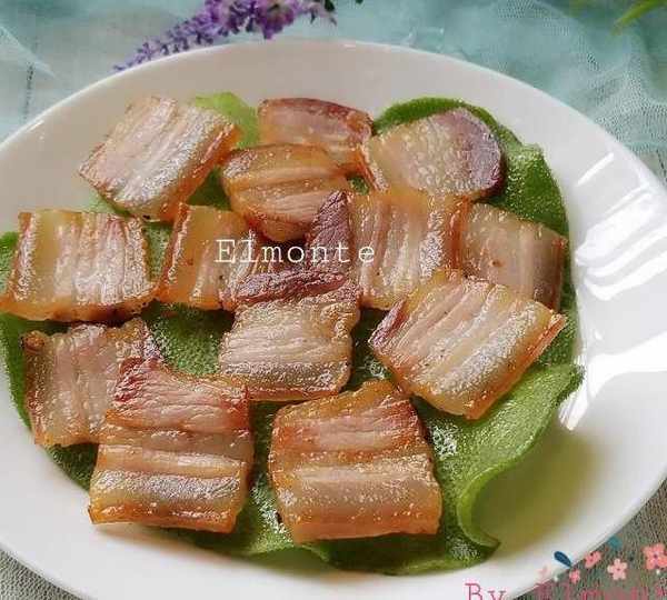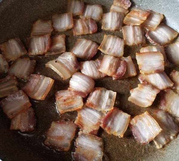 第9步、翻面煎,肥肉變透明即熟瞭。(切薄片很容易熟。)
