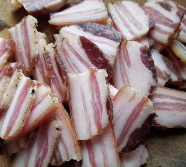 原料:五花肉、鹽、黑胡椒粉、高度白酒。
