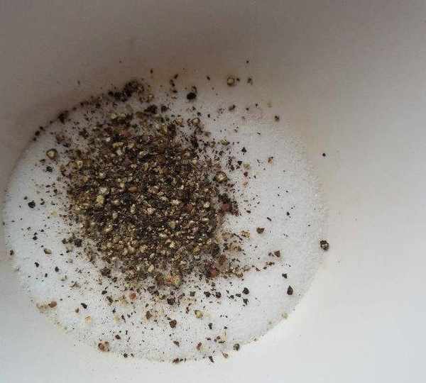 第3步、鹽加現磨黑胡椒粉拌勻。(也可放花椒炒香。)