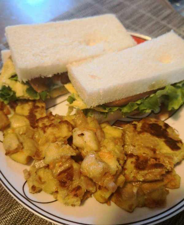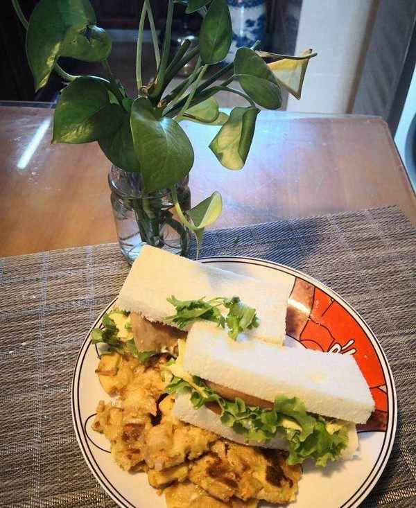 午後,閑著沒事兒,腦袋裡開始琢磨著給幾個孩子做點啥?每周四都是這樣,接閨女和她的幾個同學去補課,也變著花樣的做些好吃的,為的是不讓孩子們饑腸轆轆的放學就奔赴補課現場,餓著肚子聽課肯定沒有效率啊。這好像也成瞭我必做的功課一樣,各式花樣都嘗試瞭,有點頭疼啊,腦子裡突然出現瞭一個想法,做個三明治吧,吃起來方便,因為要在車裡解決吃飯問題,所以必須簡潔方便還要美味。