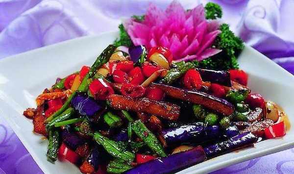 豇豆炒茄子,茄子洗凈切條豇豆洗凈切段,獨大蒜剝好每顆分4半切開,辣椒切段。鍋裡下油比平時炒菜的油多兩倍,下茄子炸軟撈起,下豇豆炸至豇豆皮起皺撈起。把多餘的油倒出來,留比平時炒菜少一半的油,油熱下大蒜辣椒爆香,下豇豆茄子翻炒幾下,倒入醬油翻炒,加適量鹽雞精,起鍋!