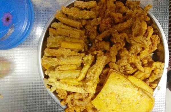其實這樣炸的肉和豆腐,最好吃的吃法是放湯,這也是我們這的一個特色吃法,這次沒來的及,明天做個湯菜,讓大傢看一下,和平時的酥肉湯的味道是截然不同的。