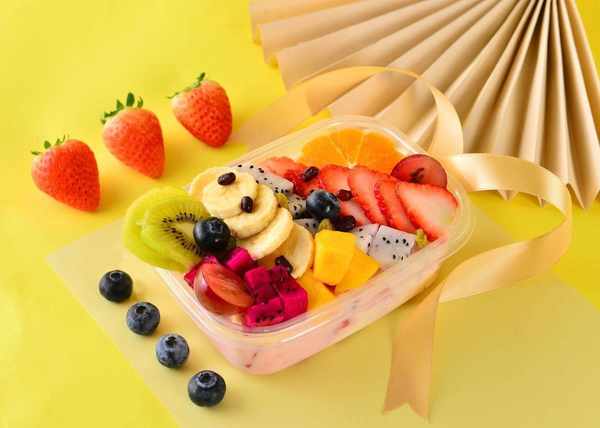 這份美食是由新鮮水果和口感順滑的拉絲酸奶組合而成,不僅美味可口,還富含營養。拉絲酸奶的特殊工藝,使得它的口感更加柔滑細膩,同時還具有活性益生菌,有效促進消化吸收,讓你在享受美味的同時也增強瞭身體健康。