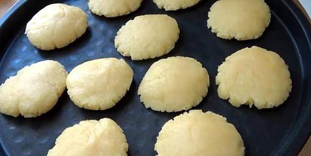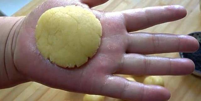4.然後將一個一個的小面團用手稍微按壓一下,按成一個一個的小餅子。