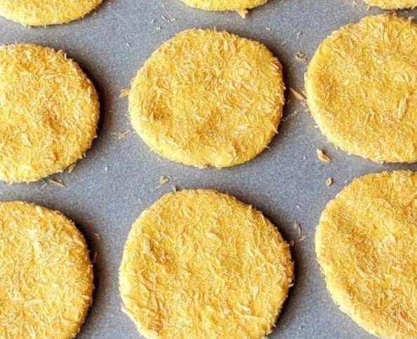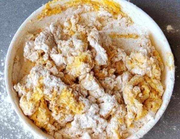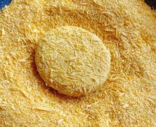 第五步:將大面團分成均勻等份的小面團,再將一個個小面團壓成餅蘸上面包糠,全部這樣完成即可