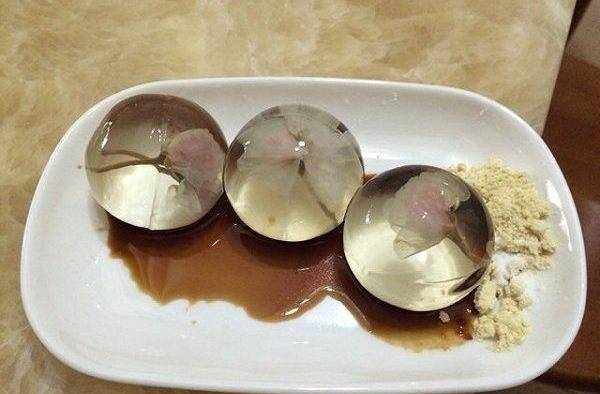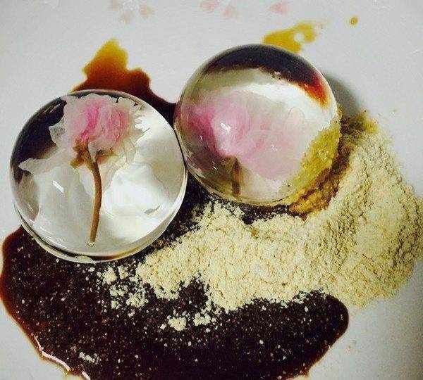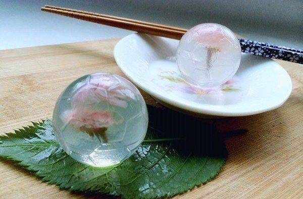 漂亮吧!這麼漂亮的都不敢下口瞭。不要以為我是拿玻璃球騙你,它真的是一種美食---水信玄餅。