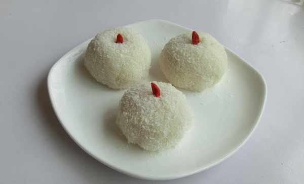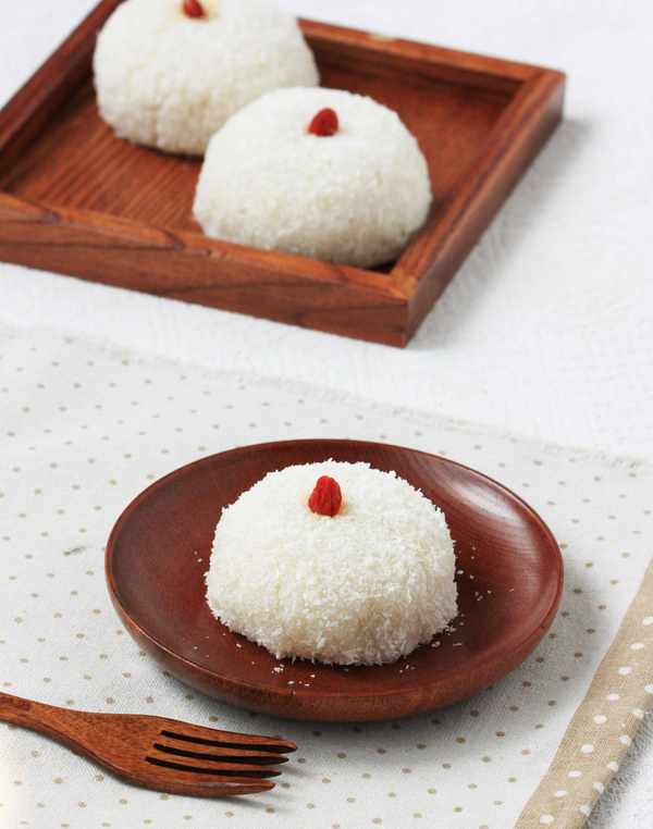10.蘸上椰蓉即可食用。
