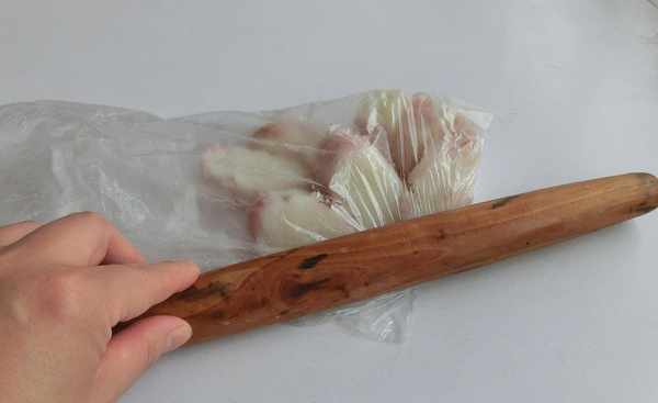 4.山藥取出放涼後,去皮,放入保鮮袋中,壓成泥。