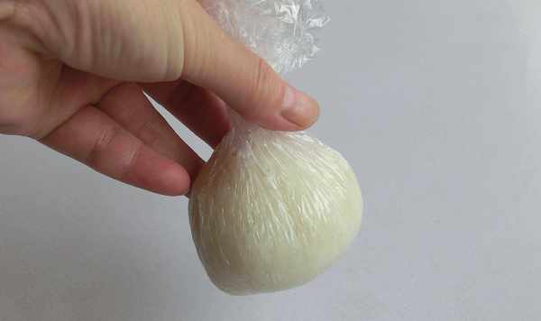 9.提起保鮮膜,包勻。