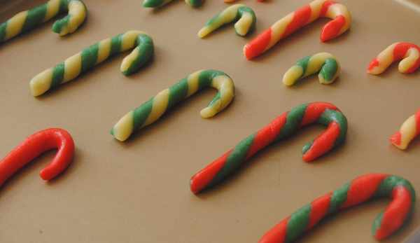 做成拐杖的樣子,烤箱150度預熱,放入烤箱中層烤制18-20分鐘左右即可