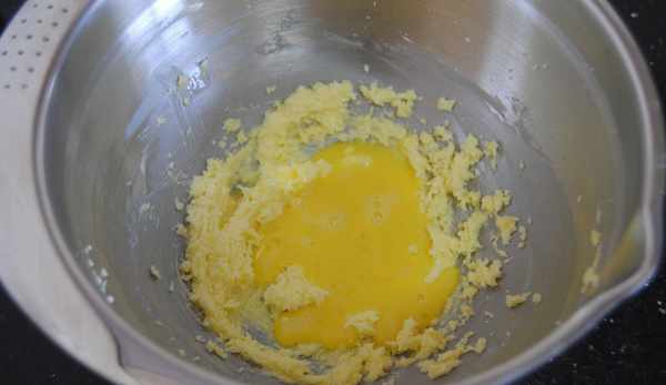 2.黃油室溫軟化後加入細砂糖用打蛋器攪打到顏色發白,膨脹