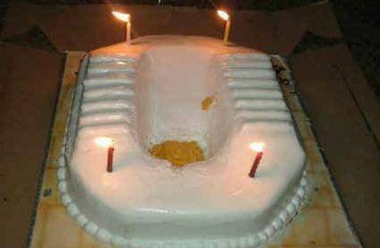 廁所蛋糕:隻想說這做的也太逼真瞭吧,還插著蠟燭,可是那一團黃色是什麼鬼,絕對不吃,想想都覺得好難受呢。
