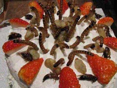 毛毛蟲蛋糕:蛋糕看上去還挺正常的,就是不知道為什麼要放那麼多“毛毛蟲”在上面呢?這得嚇到多少人啊。你敢開口吃麼?