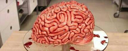 大腦蛋糕:蛋糕形似人的大腦,看上去回讓人有頭皮發麻的感覺。尤其是看著滴血的紅,覺得好恐怖,估計吃完,晚上就該做噩夢瞭。