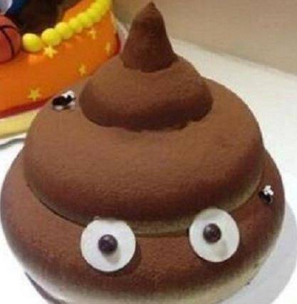 便便蛋糕:有些重口味啊。有四層,蛋糕上面還畫著兩隻大眼睛,看起來萌萌噠!