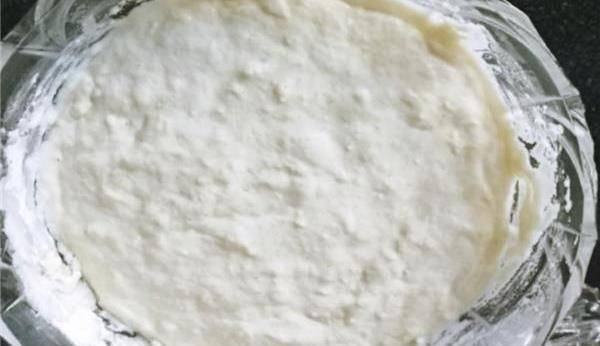 1.將中筋面粉與酵母,細砂糖混合拌勻,分次加入30度左右的溫水拌勻,蓋保鮮膜發至兩倍。