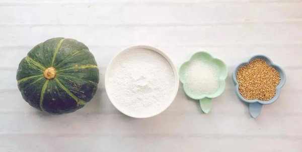 主料:南瓜,白砂糖,糯米粉,白芝麻,面粉