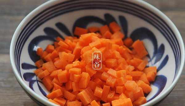 1、胡蘿卜去皮切丁;