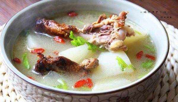 白筍鴨湯。配料:半個鴨子、300克白筍、1片生薑、一點枸杞、1片當歸、3片桂枝和少許鹽。制作步驟:將老鴨加工並切成小塊,方便食用。香料隻要加一點就行瞭,在鍋中加入鴨肉、白竹筍、薑和香料。加入適量的水煮沸。燉一小時。進食前加入適量的鹽作為調味品。
