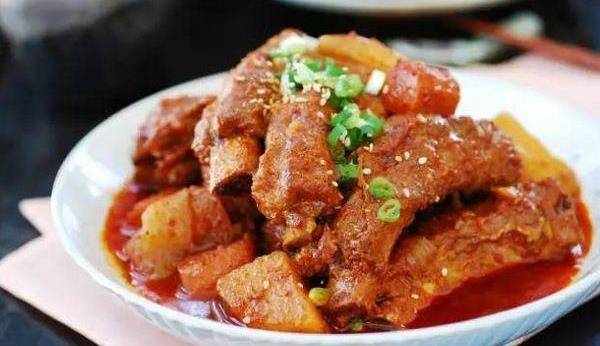 蘿卜番茄燉排骨。配料:4個西紅柿、1個白蘿卜、500克排骨、1片當歸、3根桂枝、1湯匙味精和少許鹽。制作步驟:可以根據喜好選擇肋骨。可以是一塊厚骨頭。在番茄的頂部割刀,在水中煮沸,然後去皮。剝去蘿卜的皮,把蘿卜切成塊,放在上面,加入一些水,把香料放在一起。用大火燒開,大火慢燉3小時,吃的時候可以加入調味料。