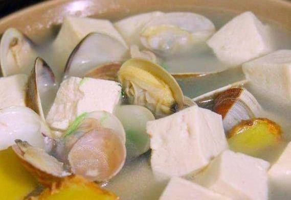 做法步驟:蛤蜊用冷水淘洗幾次,放入清水中靜置2小時吐凈泥沙備用,(水中放少許麻油能夠促使蛤蜊盡快吐沙)倒鍋裡一碗高湯大火煮開;放入切塊的豆腐煮開;再放入蛤蜊,中火加蓋煮5分鐘;最後調入鹽和白胡椒粉即可。