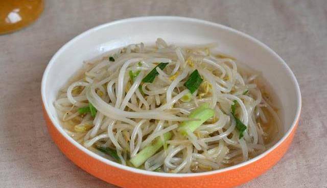 材料:綠豆芽一盤,油適量,青蒜一棵,醋適量,鹽少許