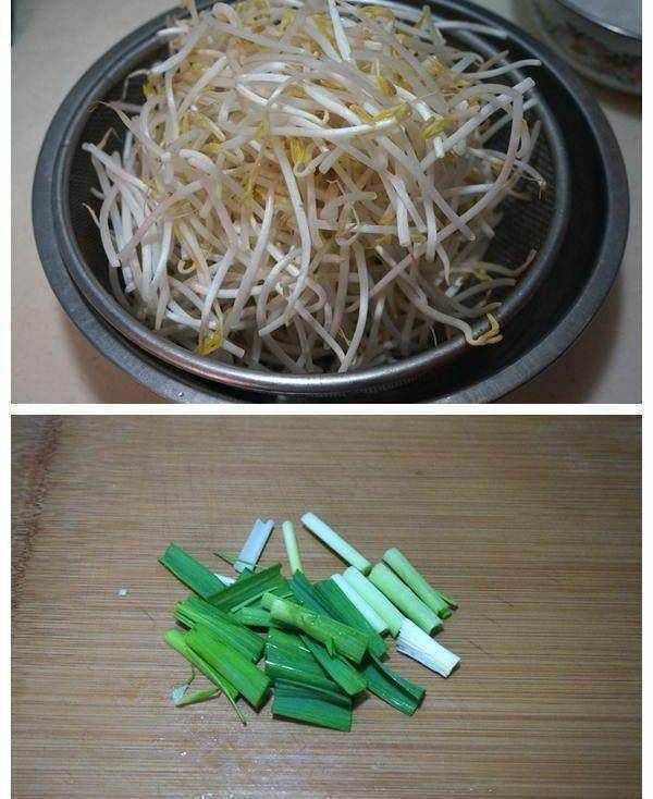 1.綠豆芽挑去雜質,清洗幹凈,瀝幹水;