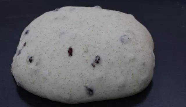 T55法式面包粉 200g;高筋面粉 200g;T150全麥面包粉 100g;糖 60g;酵母粉 6g;水 320g;鹽 10g;黃油 30g;波蘭液種 200g;蔓越莓幹 120g