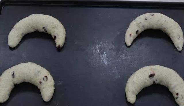 ④ 略微搓長,彎成月牙形,放進發酵箱,溫度30℃,濕度80%,時間90分鐘