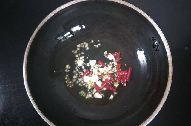 5.鍋加油燒熱,下入蔥薑蒜,幹辣椒爆香