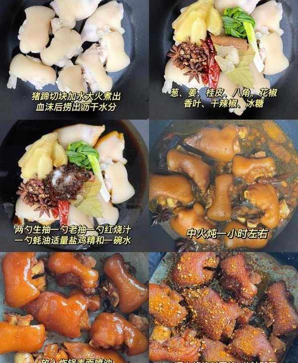 1、豬蹄切塊,加入蔥薑,料酒,大火煮出血沫,清洗幹凈後瀝幹水分。