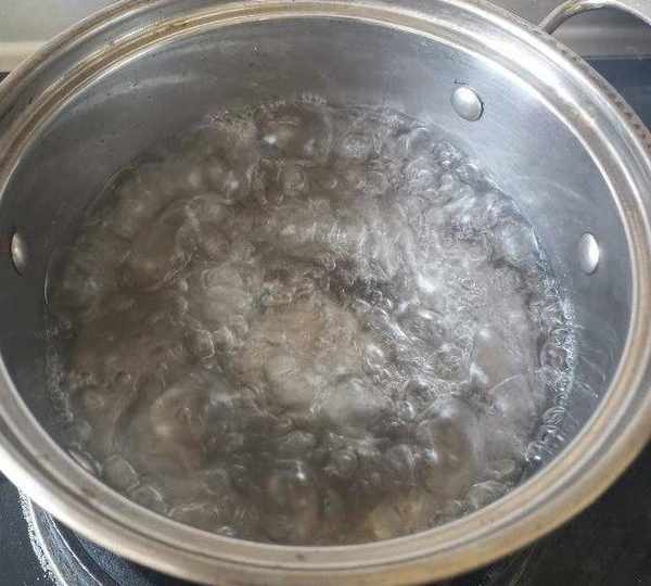 第19步、煮鍋中加大半鍋清水燒開。