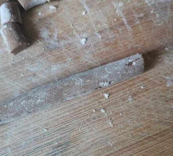第8步、將粉團搓成小長條。