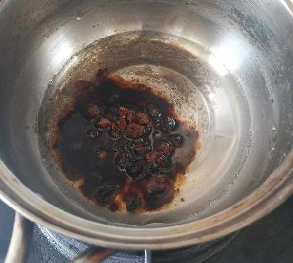 第2步、中火煮沸,紅糖融化。