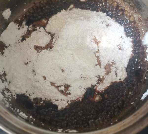 第3步、趁熱倒入100克木薯粉。