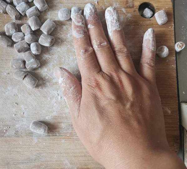 第13步、然後用手掌心順時針將小粒搓成小圓球。