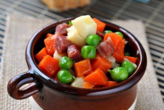 四寶春筍:春筍剝去外殼,洗凈切成小丁,胡蘿卜去皮切小丁,火腿切小丁,鍋中放油燒熱,下春筍丁煸炒透,邊緣稍有焦黃盛出備用,用鍋中餘油煸炒火腿丁和胡蘿卜丁,然後倒入豌豆一起煸炒片刻,再倒入之前的春筍丁,加一小勺料酒炒勻,加一點水煮開,蓋上蓋子煮兩分鐘,開蓋加鹽和雞精調好味道,淋點水淀粉勾個薄芡,炒勻即可出鍋,顏值超高,讓人不得不愛。