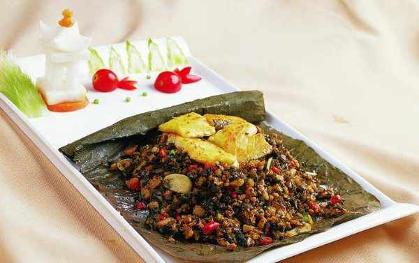 荷香雪菜焗鱈魚:鱈魚洗凈擦幹,用少許紹興酒跟一小勺鹽醃一會兒。同時將雪菜切碎,剁成細細的蓉,用少許油先將雪菜煸炒出香味,加少許糖調味。在紹酒醃制過的鱈魚上加少許薑片,鋪上炒過的雪菜,入鍋蒸20分鐘。出鍋以後放到荷葉上鋪少許蔥絲,最後淋上熱油即可享用咯。