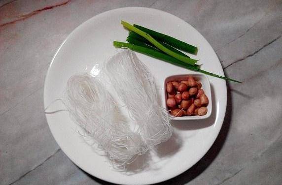 所需食材:粉絲,小蔥,花生米;調味需要:鹽,雞精,生抽,香醋,花椒油,紅油辣椒(做法以前講過);香油(依個人口味和習慣)選用。