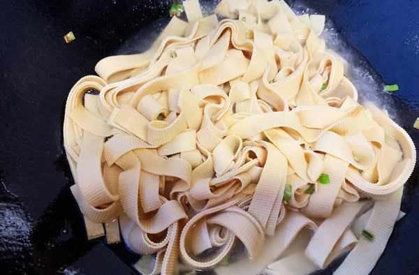 1、豆腐皮切絲不能太細,太細在炒制過程中容易炒斷、粘成一坨,不美觀還影響口感。