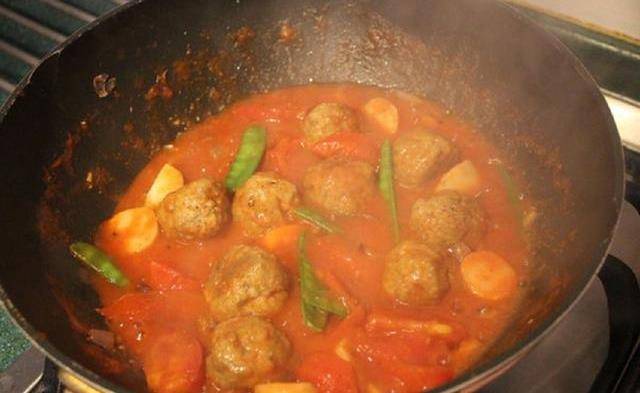 Step9.放入肉丸子,小火慢慢燉煮10分鐘,讓肉丸吸入醬汁。