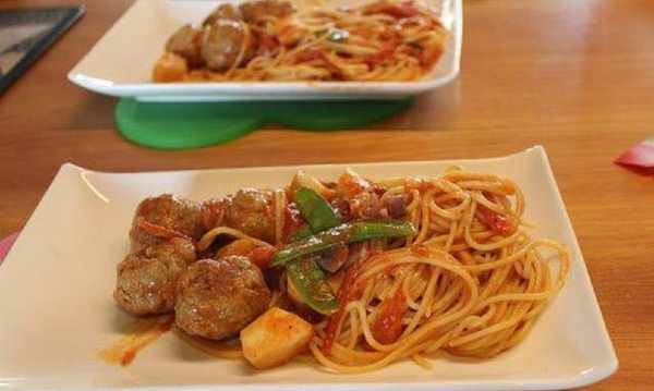 意大利面也對味。肉丸子吸瞭微酸的醬汁,松軟多汁,夠味好吃。