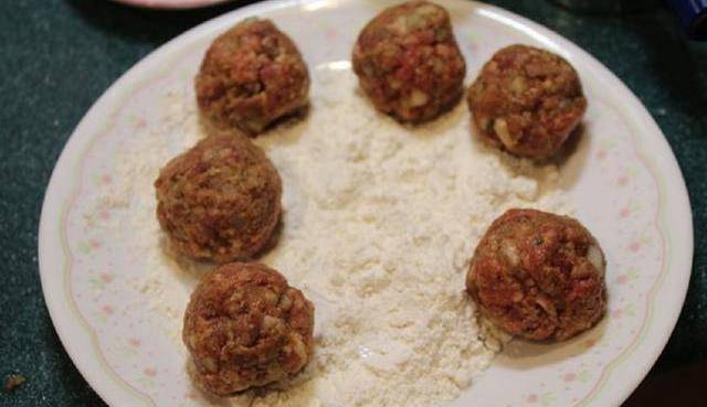 Step3.將肉餡揉成適當大小的肉丸,表面沾上一層面粉。