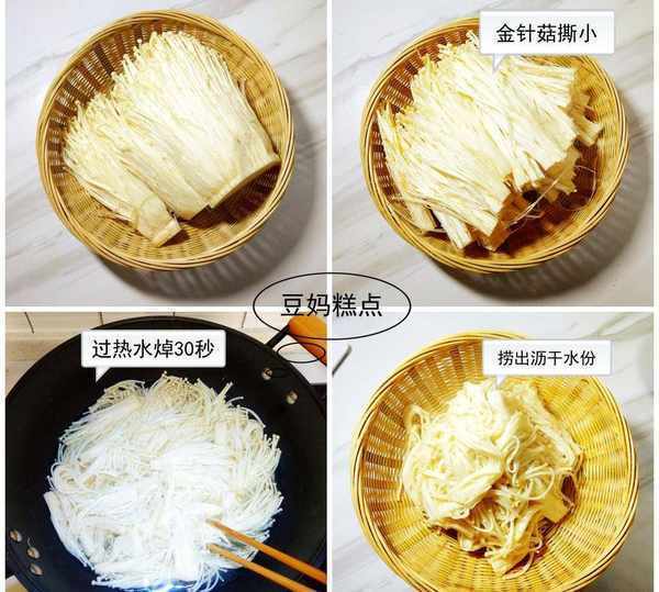 金針菇稍微焯一下,更加爽口,如果嫌麻煩,這步也可以省略;