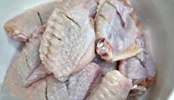 第一:在雞翅的兩面打上花刀,這樣醃雞翅的時候,會更入味(如果不打花刀的時候,雞翅得多醃一個小時,時間不到的話,雞翅就不入味)。