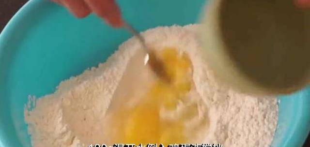 倒入一個雞蛋液,順時針攪拌,從4顆切成碎末,倒入豬油塊煉油,煉出的豬油倒入餃子餡裡特香,倒入白菜、碎末、蔥花碎末攪拌,包菜豬肉餃子餡就做好瞭。100克溫開水倒入雞蛋液攪拌,加入100克溫開水攪拌成面絮裝,揉搓成面團狀。